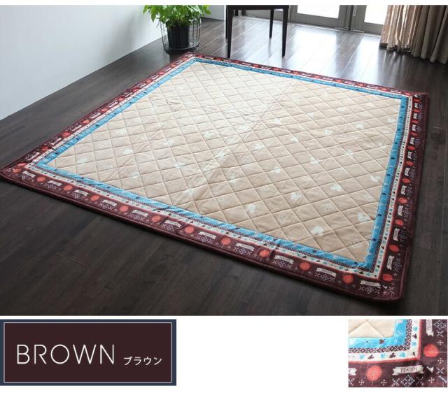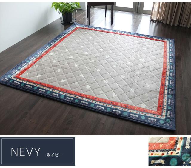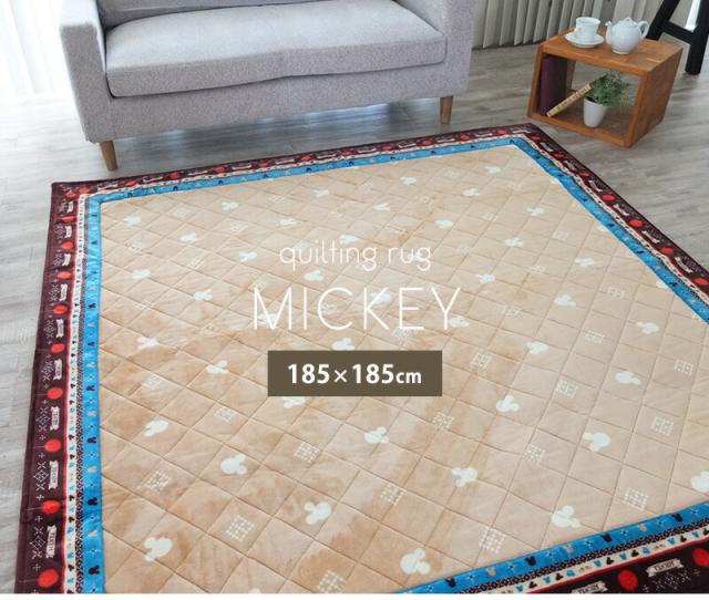 送料無料 ラグ 絨毯 正方形 185×185cm 2畳 ラグマット 8382 ミッキー キルト 洗える 洗濯機OK キルトラグ ディズニー MICKEY DISNEY おしゃれ かわいい ブラウン ネイビー シンプル 子供部屋 ホットカーペットカバー 滑りにくい 北欧 プレゼント 実用的