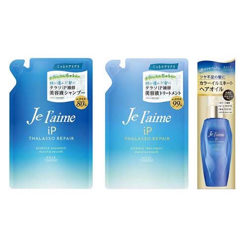 | ・ジュレーム iP タラソリペア 美容液シャンプー モイスト&スムース つめかえ:340ml ・ジュレーム iP タラソリペア 補修美容液トリートメント モイスト&スムース つめかえ:340ml ・ジュレーム iP タラソリペア イルミネートヘアオイル:80ml |