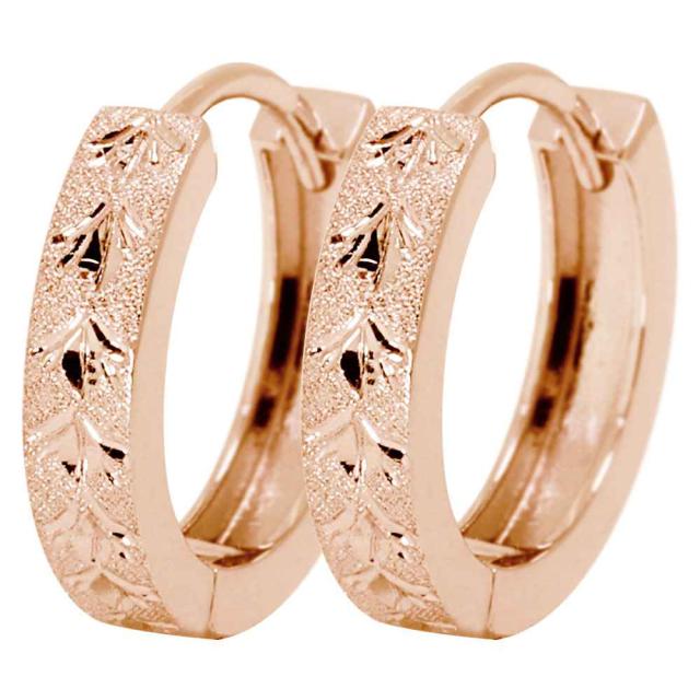 フープピアス レディース ピアス 中折れ式 10k 10金 両耳用 彫り ユリ 百合