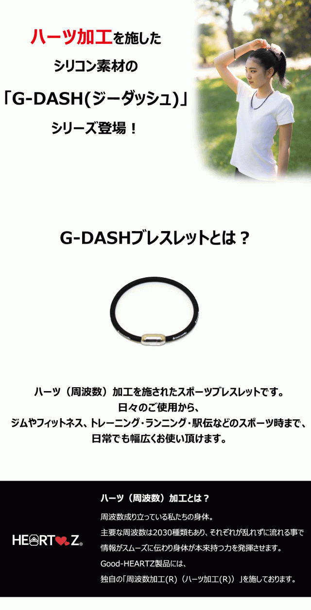 当日/翌日 配送 G-DASH ブレスレット 【365日ヤマト倉庫出荷】ネコポス便 ハーツ加工 周波数加工 スポーツブレスレット マグネット式 シリコン Good-HEARTZ Gダッシュ ジーダッシュ ジム フィットネス トレーニング ランニング 駅伝 肩こり 腰痛