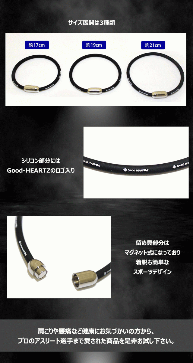 シリコン部分にはGood-HEARTZのロゴ入り、留め具部分はマグネット式になっており着脱も簡単なスポーツデザイン。