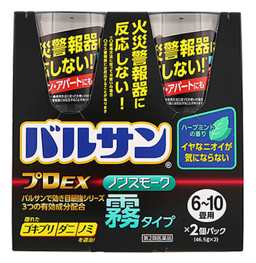 【 第2類医薬品 】 バルサン プロEX ノンスモーク霧タイプ 6−10畳用2個パック ゴキブリ、屋内塵性ダニ類、イエダニ、ノミ、トコジラミ(ナンキンムシ)、ハエ成虫、蚊成虫の駆除