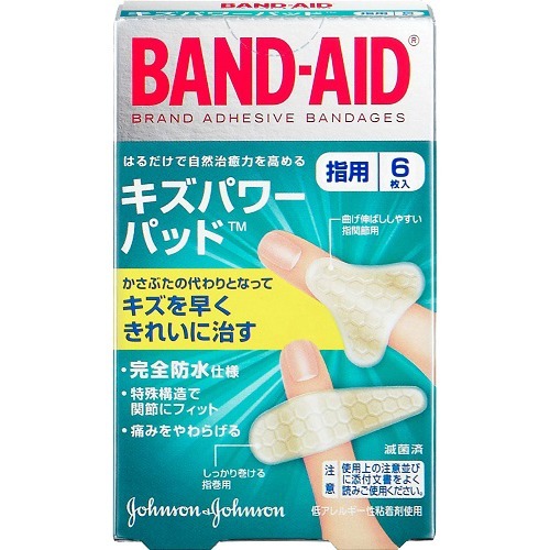 バンドエイド キズパワーパッド 指用 2サイズ6枚ブランド:キズパワーパッド販売・製造元:ジョンソン・エンド・ジョンソンハイドロコロイド素材を使用したパッドが、体液をゲル状にしてキズ口に保持。キズが治る為に最適な環境をサポートする、指先用絆創膏です。痛みをやわらげながら、キズを早く治します。高い粘着力と、優れた防水・防菌性により、お風呂やシャワーも貼ったまま可能です。しなやかな貼り心地で、肌色半透明なので目立ちません。指にパッドを重ね巻きしてもはがれにくい、先細のユニークな形を採用。 ご注意●感染がみられる傷、かさぶたができている傷には使用しないこと。●貼付前に、傷を水道水などでよく洗浄すること。●傷より大きいサイズの製品を選ぶこと。●一度開封したもの、使用したものを再使用しないこと。●糖尿病や血行障害の治療を受けている人は、使用につき医師にご相談すること。●小児に使用させる場合には、保護者の監督のもとに使用させること。●2歳以下の乳幼児には使用しないこと。●直射日光を避け、涼しい所に保管すること。●小児の手の届かない所に保管すること。●使用期限のすぎた製品は使用しないこと。●使用に際しては添付文書をよく読むこと。●にきび、湿疹、虫さされ、皮膚炎などの症状には使用できません。 効能・効果切り傷、すり傷、さし傷、かき傷、靴ずれ等の創傷および経緯度の熱傷の治療の促進、痛みの軽減、湿潤環境の維持、保護 衛生医療/絆創膏/指先/指先用絆創膏
