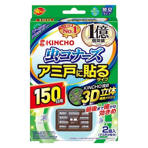 虫コナーズ アミ戸に貼るタイプ 網戸用虫よけ 150日用 無臭(2個入) 虫よけ 虫除け アミ戸 単虫よけ 150日間 害虫 3D立体構造 無臭 簡単