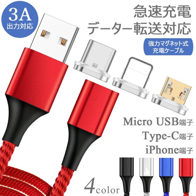 充電ケーブル 4点セット 3in1 高速充電 データ転送 急速充電 ケーブル 充電器 磁石 データ転送ケーブル 1m アイフォン スマホ タブレット ipad iphone type-c マイクロusb タイプc usbケーブル micro usb アンドロイド ios ナイロン 丈夫 頑丈 ライトニング 過電流 断線防止