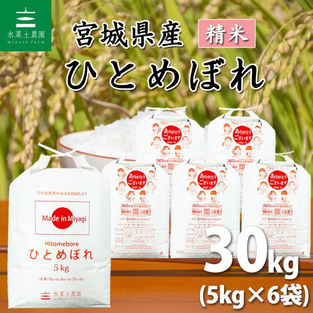 【宮城県産】米 お米 30kg (5kg×6袋) ひとめぼれ 白米 精米 令和7年産 送料無料 / 選べるプレゼント付き hbs30