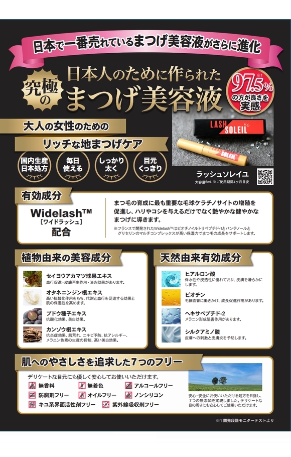 日本人のために作られた究極のまつげ美容液。日本で一番売れているまつげ美容液がさらに進化。大人の女性のためのリッチな地まつ毛ケア。ラッシュ ソレイユ レビュー商品の評価: | ||||||||||||||||||||||||||||||||||
