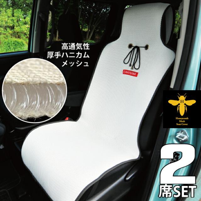 2席セット 涼しい シートカバー 涼感 ホワイト ハニカムメッシュ ベーシックデザイン シングル 立体構造 汎用 軽自動車 普通車 トラック 重機 洗える 布 カー シート カバー 車 内装パーツのCARESTAR ケアスター