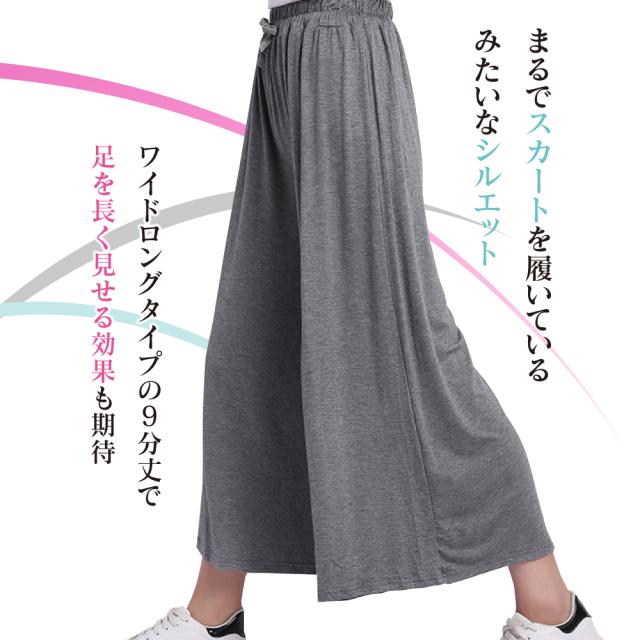 ワイドロングタイプの9分丈で足を長く見せる効果も期待!