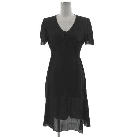 【中古】フェアリー Fairly ワンピース 半袖 ミディ丈 Vネック シンプル 透け感 ブラック 黒 42 レディース