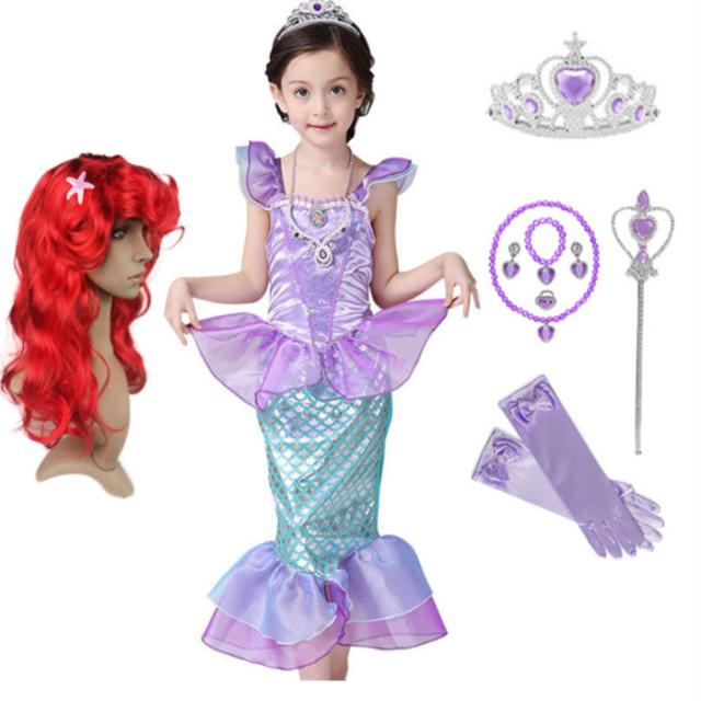 送料無料!リトル マーメイド風 アリエル風 子供ドレス コスチューム 子供コスプレ ハロウィン 衣装 忘年会 文化祭 コスチューム パーティー用 セット