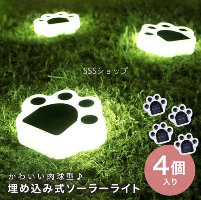 送料無料 ガーデンライト LED 4個セット 埋め込み式 ソーラーライト 屋外 防水 防犯 肉球 足跡 置き型 庭園灯 LED屋外照明
