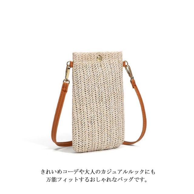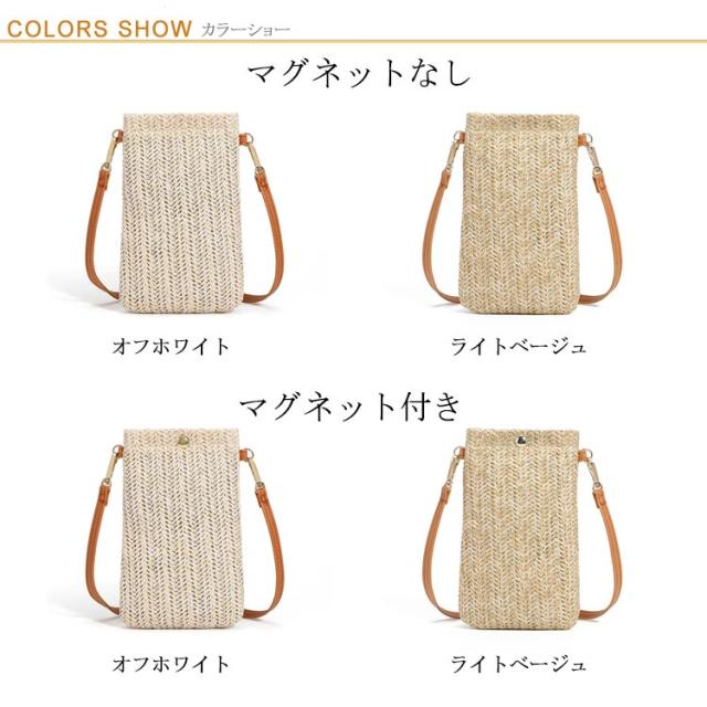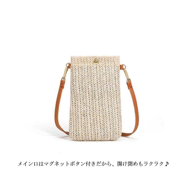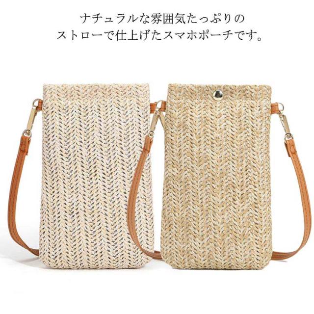 【送料無料】スマホポーチ 手編み レディース 夏 ストロー 斜めがけ ストローバッグ オシャレ スマホショルダー 薄型 縦型 シンプル 無地 ストロースマホポーチ 海辺 ビーチ 水遊び リゾート 敬老の日