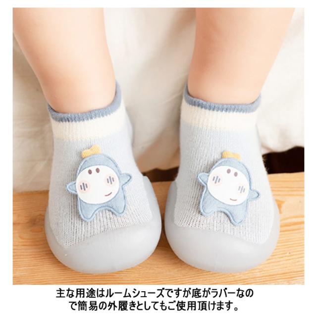 | はじめてのたっちとあんよを応援! 靴下より保護力があって滑らず安全で、靴よりも軽いのでとっても歩きやすい。 赤ちゃんのためのトレーニングシューズです。 屈曲性の良い靴型グリップ付きで滑りにくく、室内で靴に慣れる練習用としておススメ! 赤ちゃんの足の形や動きを研究して作られた安心設計。 主な用途はルームシューズですが底がラバーなので簡易の外履きとしてもご使用頂けます。 手洗い、または洗濯ネットに入れて洗濯機で洗えるのでいつでも清潔にお使い頂けます。 汚れたら洗えるので衛生的。 生体力学に基づいて作られた、つま先に厚みがあるコロンとした形。 足裏をしっかり守り、フローリングでもすべらず快適に歩けます。 縫い目が無く、接着剤も使用していないので、なんでも口にする赤ちゃんにも安心。 出産祝いやプレゼントにも喜ばれます。 | |