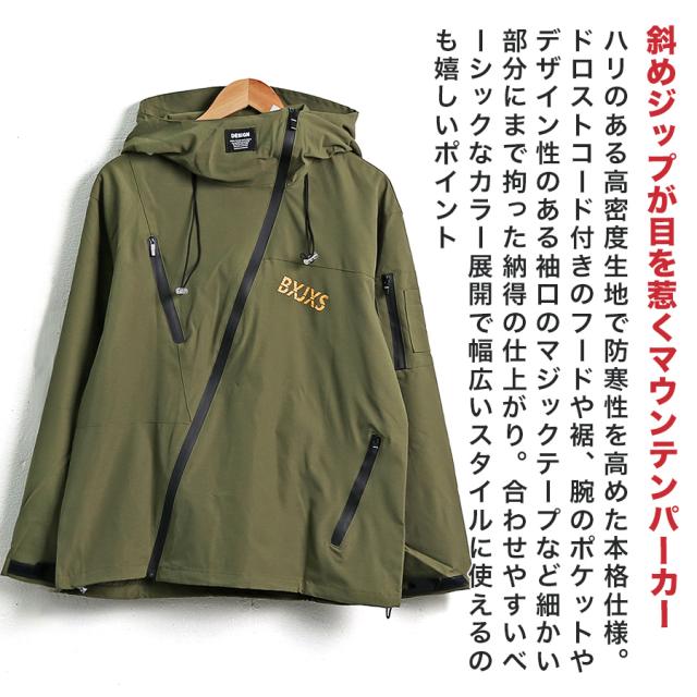 | 商品説明 | 大胆な斜めジップデザインが目を惹くマウンテンパーカー。 ハリのある高密度生地で防寒性を高めた本格仕様。 水の侵入を防ぐ止水ファスナーは機能面はもちろん高級感を感じさせ るデザイン面にも貢献。 ドロストコード付きのフードや裾、腕のポケットやデザイン性のある袖口のマジックテープなど細かい部分にまで拘った納得の仕上がり。 合わせやすいベーシックなカラー展開で幅広いスタイルに使えるのも 嬉しいポイント。 |