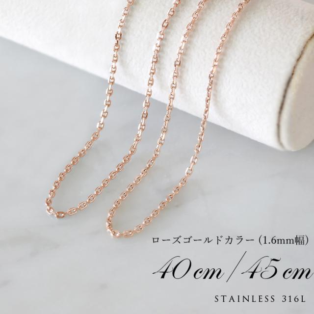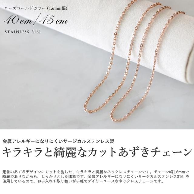 チェーン ネックレス レディース サージカルステンレス 40cm 45cm 幅1.6mm ローズゴールドカラー 4面カットあずき 小豆 金属アレルギー対応 316L ギフト プレゼント 贈り物 誕生日 記念日 ランキング ホワイトデー クリスマス gnssc05b_rg