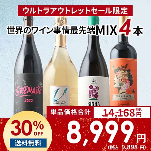 ミックスワイン セット 「14」世界のワイン事情最先端MIX4本セット(赤2本、白1本、泡1本) 送料無料【お試し ワインセット 家飲み ソムリエ 飲み比べ】