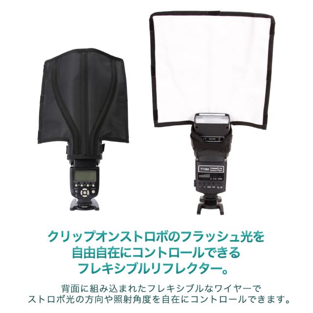 クリップオンストロボのフラッシュ光を自由自在にコントロールできるフレキシブルリフレクターです。