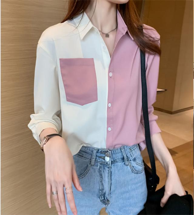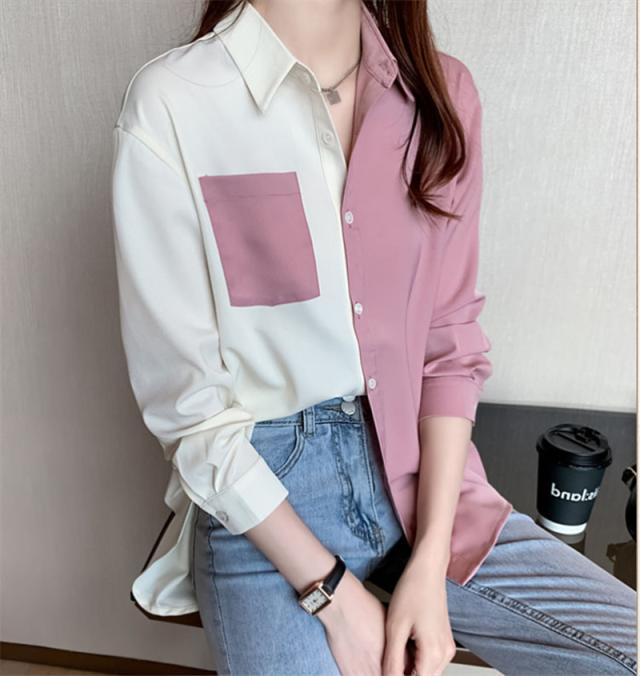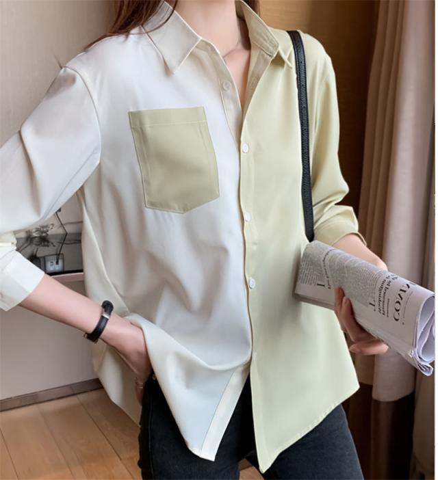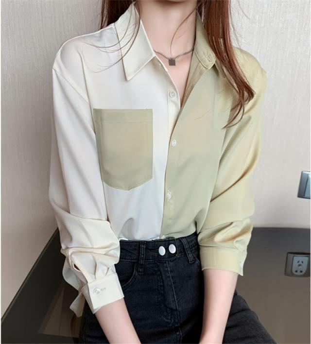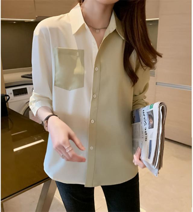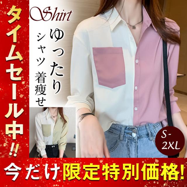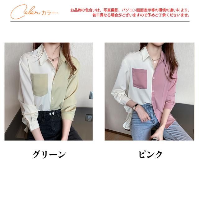 新作 シャツ ブラウス レディース 長袖 シフォン 切り替え Vネック 開襟 着痩せ ゆったり トップス 秋 通勤 ストリート系