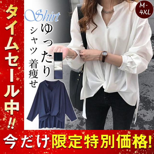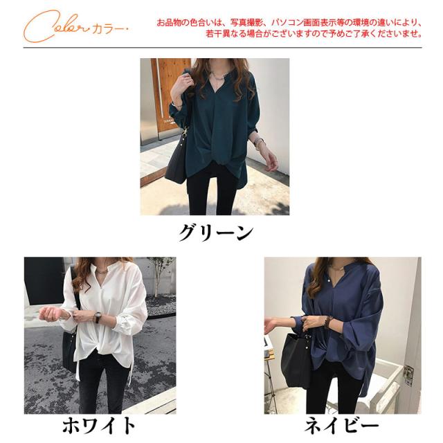 シャツ ブラウス レディース 長袖 立ち襟 ゆったり ルーズ シフォン きれいめ フォーマル 大きいサイズ 高級感 エレガント お