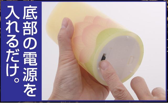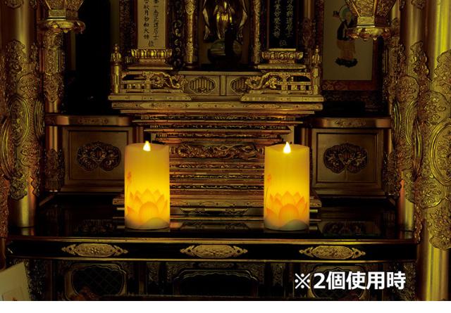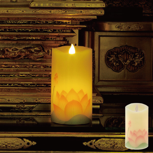 ・ほのかな灯りに蓮の花が浮かび、辺りをやさしく照らすLEDローソクです。