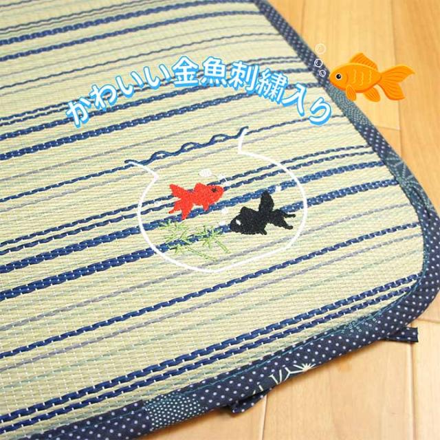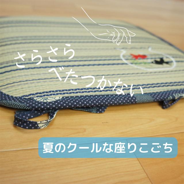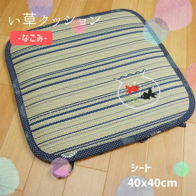 い草シートクッション なごみ かわいい金魚刺繍入 さらさらした座り心地 40x40cm