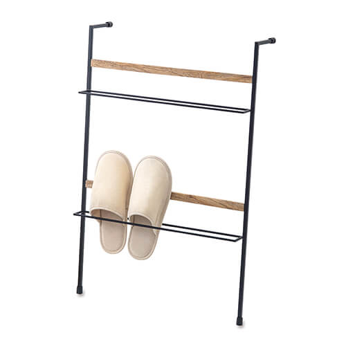 ポッシュリビング ウォールスリッパラック 41348 | 2段 8足収納 マンゴーウッド アイアン 木製 鉄 玄関 エントランス 立て掛けスリッパホルダー シンプル おしゃれ