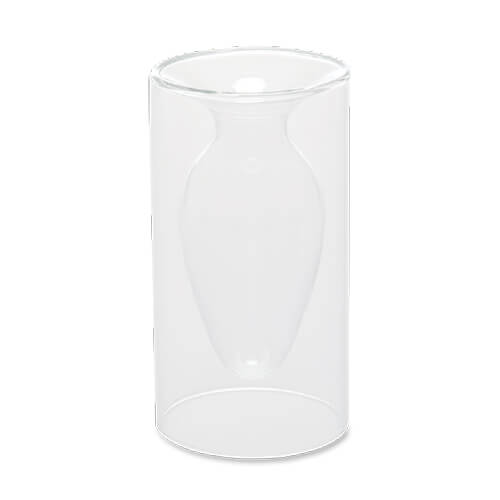 ・クリアの円柱の中にうっすらと個性的なフォルムが浮かんで見える。