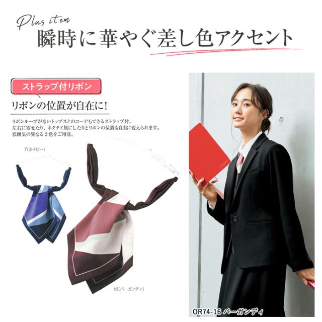 事務服 リボン スカーフ ストラップ レディース 制服 nuovo 秋冬 春夏 FOLK ネクタイ風【送料無料】ネイビー バーガンディ 医療事務 受付 接客 冠婚葬祭 セレモニー オフィス ウェア スカーフ かわいい おしゃれ 華やか アクセサリー agesugi_sfa