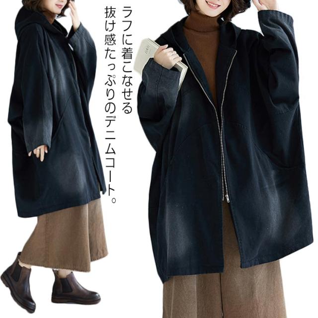 デニムコート ロング デニムジャケット レディース ビッグサイズ スプリングコート レディース トレンチコート フード付き ジージャン カーディガン 春 秋冬