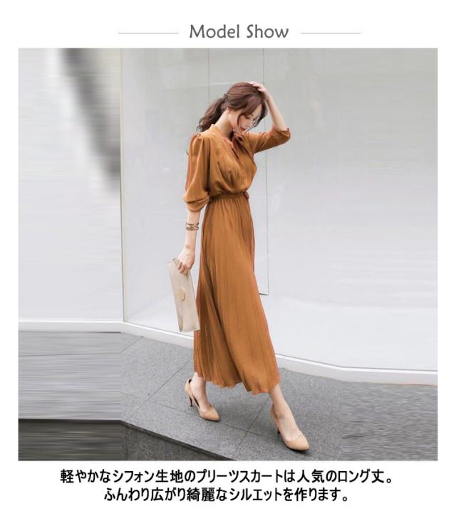 送料無料 プリーツ ワンピース レディース 秋 長袖 ロング マキシ ロングワンピース マキシワンピース プリーツワンピース シャーリング きれいめ おしゃれ ふんわり 接触冷感 冷感 涼感 涼しい 綺麗 ウエストリボン付き シフォン 通勤 結婚式 入園式 卒業式 大きサイズ