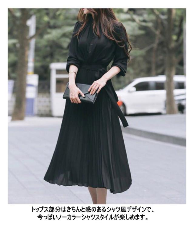 | 1枚でオシャレ感が出せる、女性らしいシフォンワンピースです。 トップス部分はきちんと感のあるシャツ風デザインで、今っぽいノーカラーシャツスタイルが楽しめます。 ウエストリボン付なので、その日の気分で着こなしを変えられるのも嬉しいポイント。 リボン位置を変えたり、手持ちのベルトを合わせるのもおすすめです。 軽やかなシフォン生地のプリーツスカートは人気のロング丈。 ふんわり広がり綺麗なシルエットを作ります。 | |
