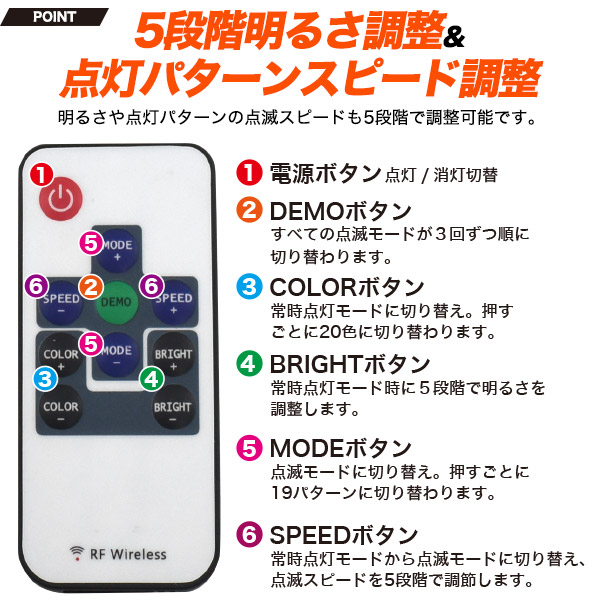 20色変化&19種類点灯パターン! RGBマルチカラーLEDバーライト83cm