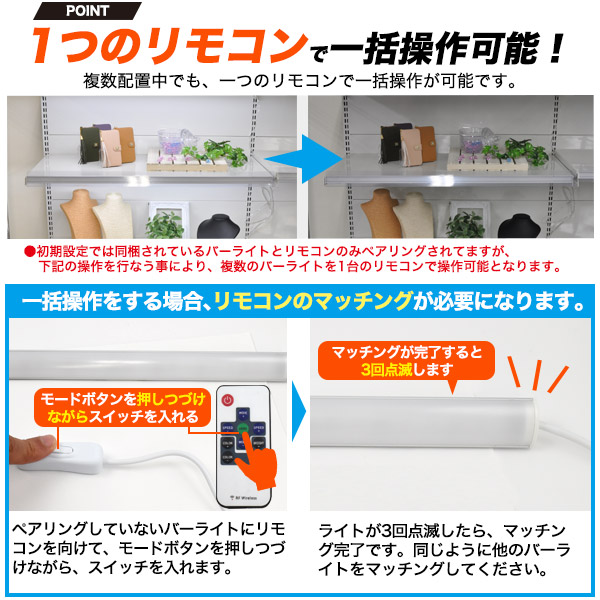 LEDバーライト 83cm RGBマルチカラー リモコン付き 調光可能 簡単取付 ライティングバー 消費電力11.5W 点灯 点滅 装飾照明 簡単設置 照明 LEDライト 間接照明 ディスプレイ 店舗 什器照明 照明器具 インテリアライト 装飾 お店 店舗 バー イベント 飾り
