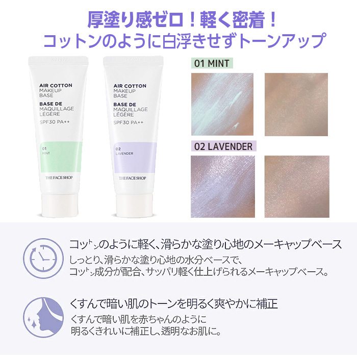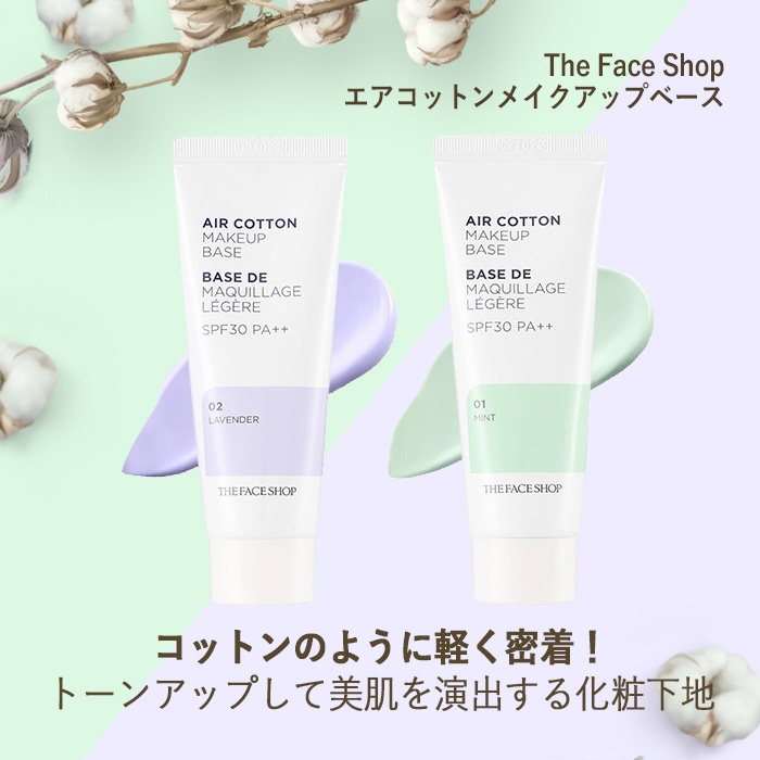 The Face Shop ザフェイスショップ エアコットン メイクアップベース 35g 選べる2色 (ミント /ラベンダー) 化粧下地 トーンアップ 韓国コスメ 正規品 国内発送