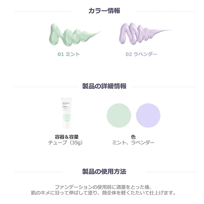 ●肌にしっかりと馴染み少量でカバー!厚塗り感なくトーンアップする化粧下地。選べる2色