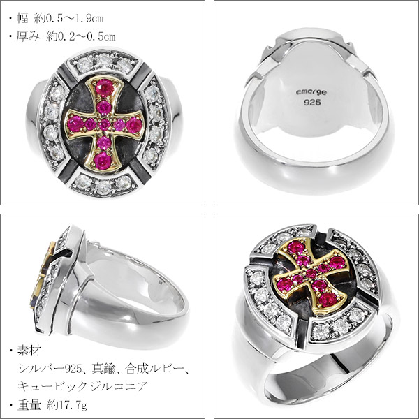 emerge エマージュ ラグジュアリー クロス リング 10〜30号 指輪 シルバーリング シルバー シルバー925 シルバーアクセ 十字架 石付き