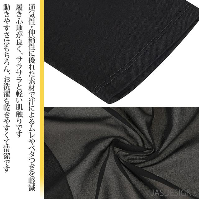 通気性・伸縮性に優れた素材で、汗によるムレやベタつきを軽減し履き心地が良く、サラサラと軽い肌触りです。