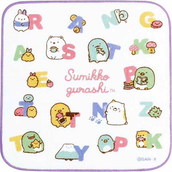 メール便 OK すみっコぐらし ミニタオル ハンカチ 女の子 向けアルファベット CM38006 サンエックス おしゃれ で かわいい 文房具