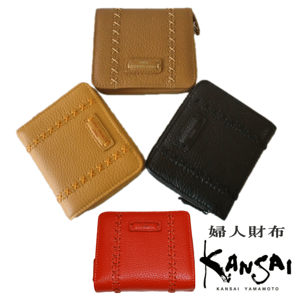 財布 KANSAI YAMAMOTO 山本寛斎 ヤマモトカンサイ レディース 婦人用本革二つ折りラウンドファスナー財布 小銭入れ付き MJ4503 イエロー色 ベージュ色 ブラック色 オレンジ色 ワイン色/財布 レディース 二つ折り