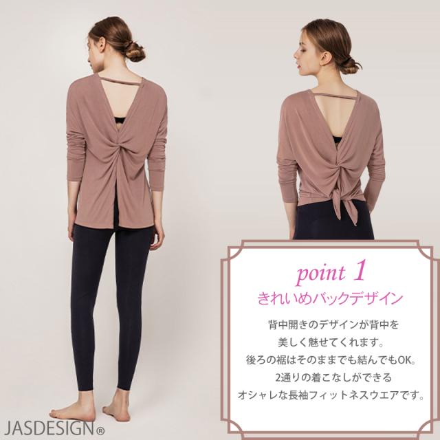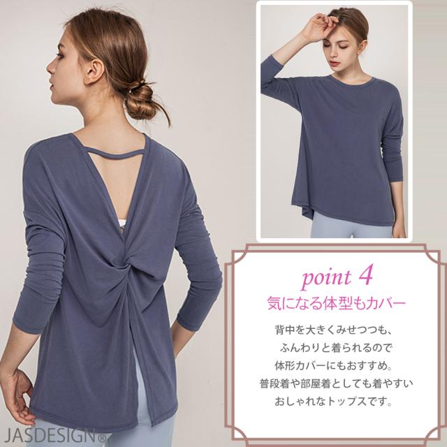 ヨガウェア 長袖 Tシャツ トップス レディース バックオープン 背中開き 体型カバー おしゃれ かわいい ヨガトップス バレエ フィットネスウェア ヨガウェア ヨガトップス フィットネス yoga ホットヨガ ピラティス ジム ダンス可愛い JM-195