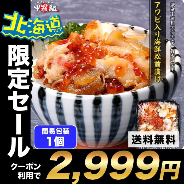 ★クーポン利用で⇒2,999円!★ アワビ入り 海鮮松前漬け 250g(約3人前) 北海道 昆布ダシ 出汁 あわび いくら 数の子 ズワイガニ 蟹 かに ほたて ホタテ プレゼント ギフト 贈答 贈り物 ご飯のお供