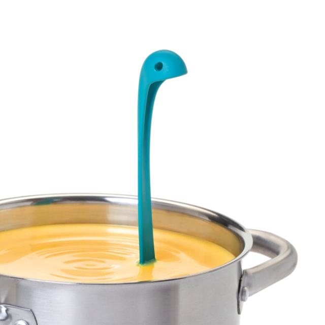 お鍋からにょきっと顔を出す姿に顔がほころびます。ネッシーの顔の部分がお鍋のフチに引っ掛かりやすいので、お玉の柄がお鍋に沈んでしまうことを防ぎます。