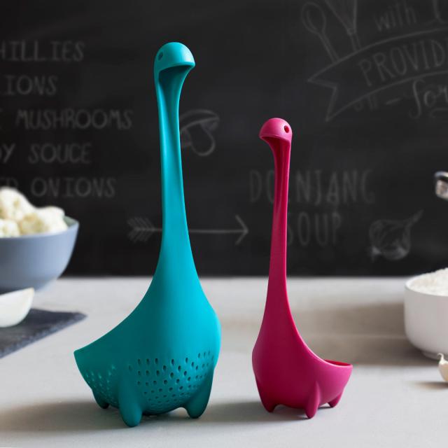 ネッシーの形をしたコランダーやジャンボサイズのレードルなどもお選びいただけます。サイズによっては、大きいネッシーの背中に小さいネッシーがおんぶされているようにコンパクトに重なるので、収納場所にも困りません。