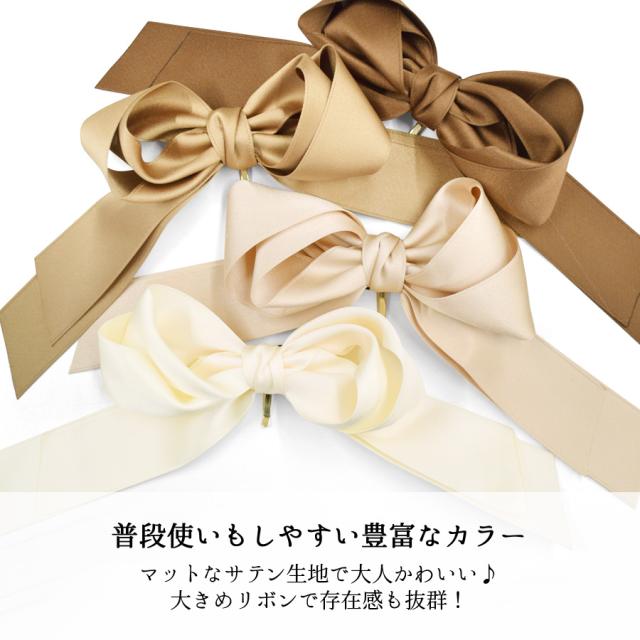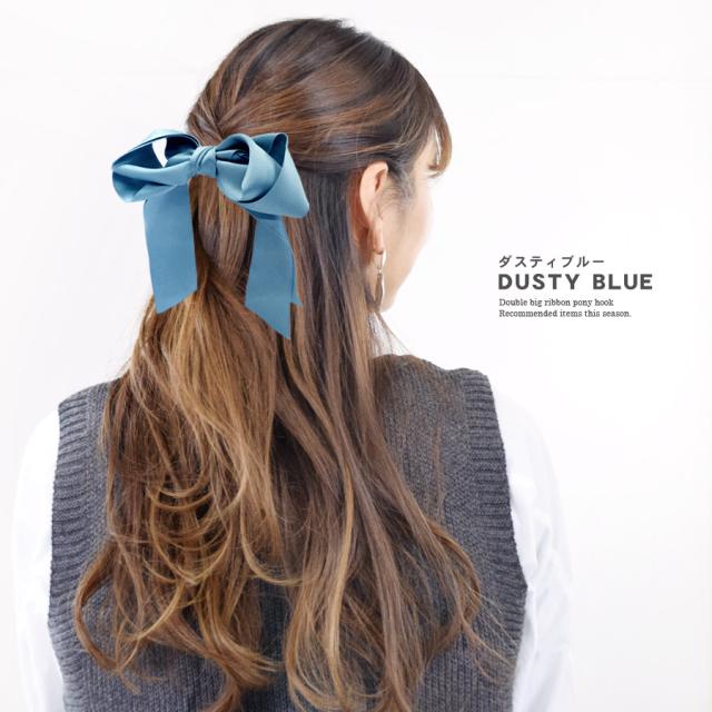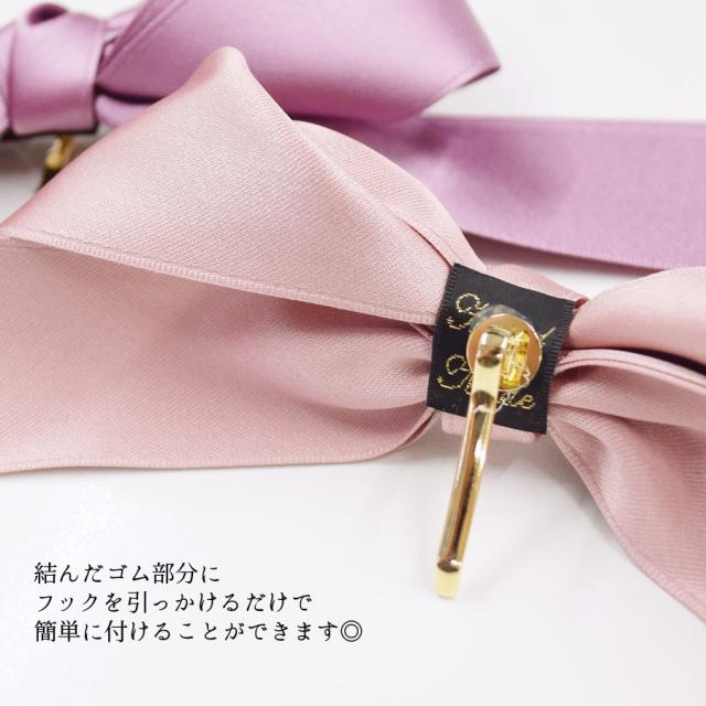 【ポニーフック リボン レディース ヘアアクセサリー ヘアアクセ ヘアカフス フック まとめ髪 ヘアピアス ビッグリボン ダブルリボン サテン マット BIG 髪留め 髪飾り ヘアアレンジ 大人 衣装 コスプレ 結婚式 オケージョン】