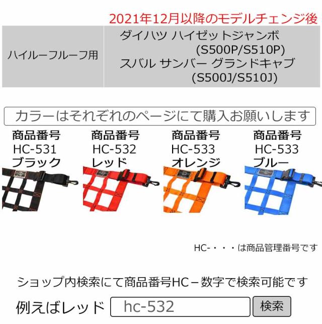 ハードカーゴ ルーフネット 色カモフラージュ ダイハツ ハイゼットジャンボ S500P S510P 2021年12月以降モデルチェンジ後用 軽トラック用 カスタム パーツ HARD CARGO HC-535