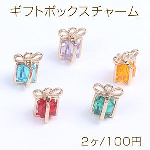 ガラスストーンチャーム ギフトボックス カン付き 10×12mm ゴールド(2ヶ)