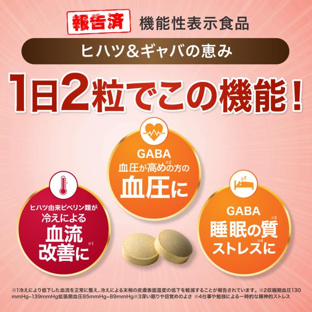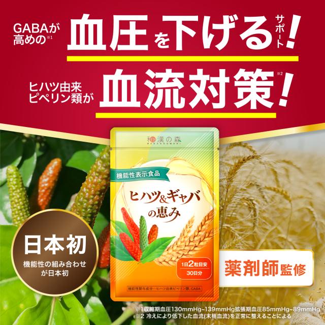 血圧を下げる サプリメント ヒハツ&ギャバの恵み 血圧 サプリ ヒハツ ギャバ 下げる 血流 冷え むくみ 血圧サプリ gaba 睡眠 ストレス 目覚め 食べ物 高い 良くする 改善 効果 悪い症状 食品 飲み物 機能性表示食品 和漢の森 送料無料