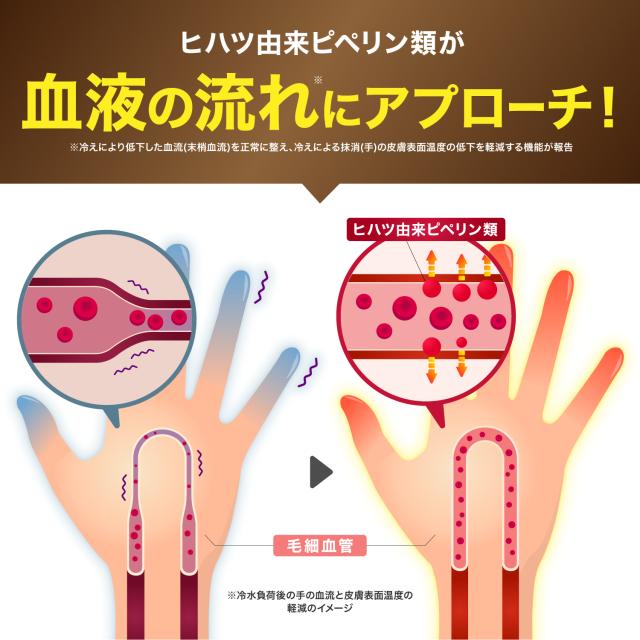血圧 と 冷え により低下した 血流 (末梢血流) を正常に整え、 冷え による末梢の皮膚表面温度の低下 をダブルで対策