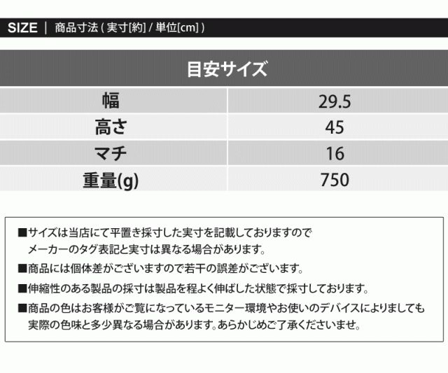 | 素材 | ポリエステル ※製造工程の過程による、小さなほつれ、微小な縫製のずれなどの 返品対応は致しかねます。ご了承ください。 | ||